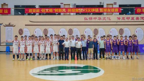 为喜迎亚运,弘扬体育精神,5月20日晚,区环投集团与义桥镇篮球友谊赛在义桥镇文化体育中心火热开赛。义桥镇党委书记莫勤恒,区环投集团党委书记、董事长徐宁军,集团党委副书记、总司理孔乐加入观赛,并为参赛球员加油鼓劲。