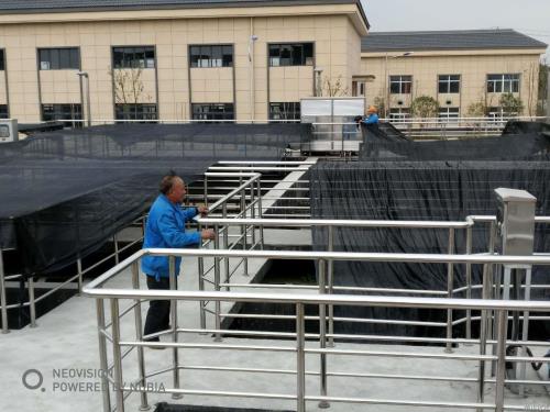 随着气温逐渐回暖,思量到藻类爆发的可能性,钱江水处置惩罚厂未雨绸缪,提前为高效沉淀池撑起一把“防护伞”,在池上笼罩遮阳膜。既有用延缓了藻类的生长,同时避免暴晒导致的斜管的快速老化。