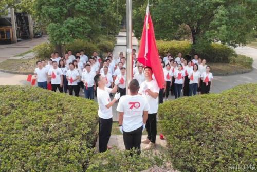 今天推出第三例:国旗飘扬迎国庆——污水公司机关党支部与钱江水处置惩罚厂、中片运管中心党支部
