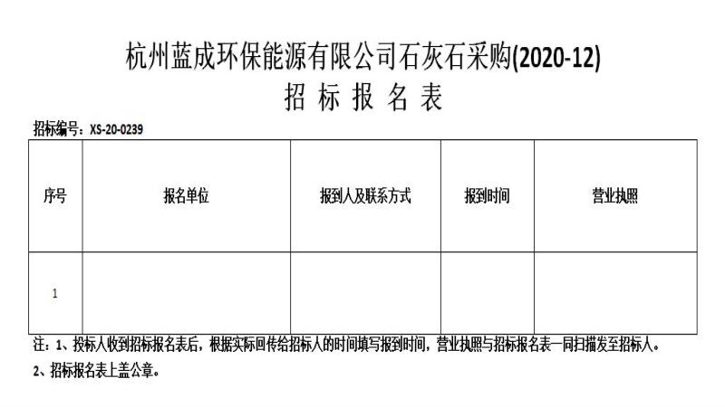 ¶þ¡¢ÕбêÏîÄ¿£ºº¼ÖÝÀ¶³É»·±£ÄÜÔ´ÓÐÏÞ¹«Ë¾Ê¯»Òʯ²É¹º(2020-12)¡£