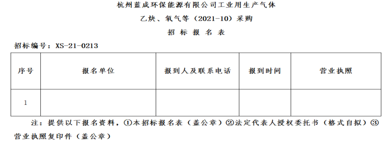 ¶þ¡¢ÕбêÏîÄ¿£ºº¼ÖÝÀ¶³É»·±£ÄÜÔ´ÓÐÏÞ¹«Ë¾¹¤ÒµÓÃÉú²úÆøÌåÒÒȲ¡¢ÑõÆøµÈ£¨2021-10£©²É¹º¡£
