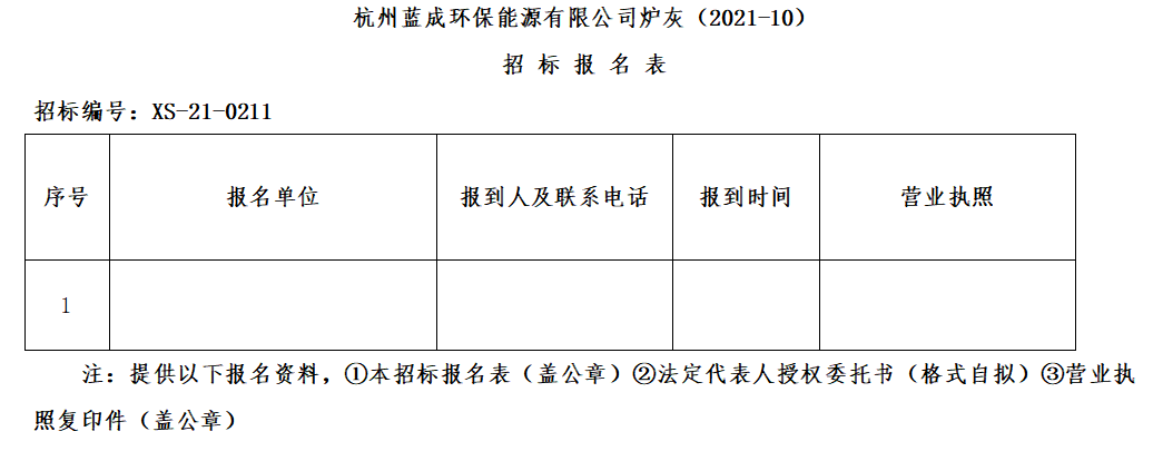 Ò»¡¢ÕÐ ±ê ÈË£ºº¼ÖÝÀ¶³É»·±£ÄÜÔ´ÓÐÏÞ¹«Ë¾£¬Õбê±àºÅ£ºXS-21-0211¡£