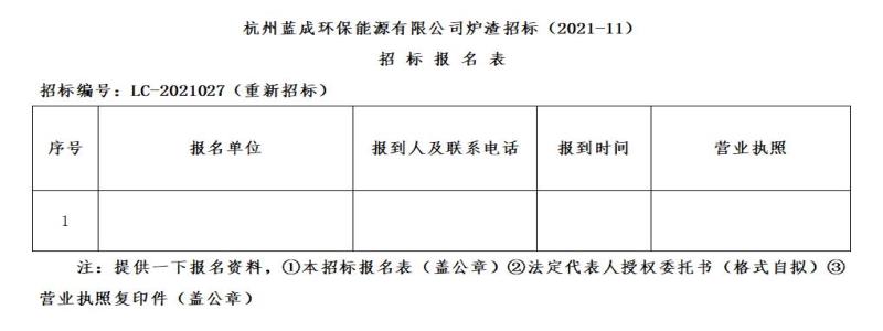 Ò»¡¢ÕÐ ±ê ÈË£ºº¼ÖÝÀ¶³É»·±£ÄÜÔ´ÓÐÏÞ¹«Ë¾£¬Õбê±àºÅ£ºLC-2021027£¨ÖØÐÂÕб꣩¡£