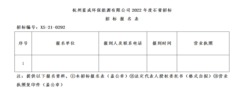 杭州蓝成环保能源有限公司,凭证杭州AG真人国际官方网站情形集团物资招标治理要求,对杭州蓝成环保能源有限公司2022年度石膏举行果真招标。