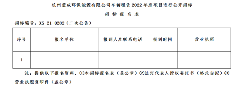 ¶þ¡¢ÕбêÏîÄ¿£ºº¼ÖÝÀ¶³É»·±£ÄÜÔ´ÓÐÏÞ¹«Ë¾³µÁ¾×âÁÞ2022Äê¶ÈÏîÄ¿¡£