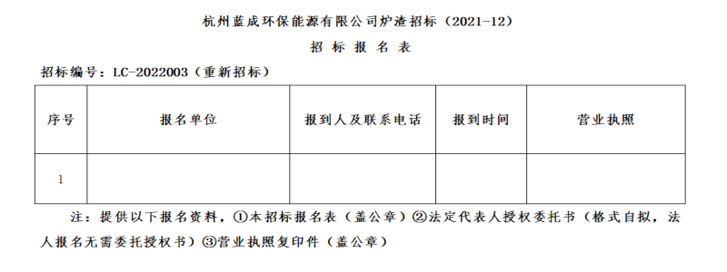 Ò»¡¢ÕÐ ±ê ÈË£ºº¼ÖÝÀ¶³É»·±£ÄÜÔ´ÓÐÏÞ¹«Ë¾ £¬Õбê±àºÅ£ºLC-2022003£¨ÖØÐÂÕб꣩¡£