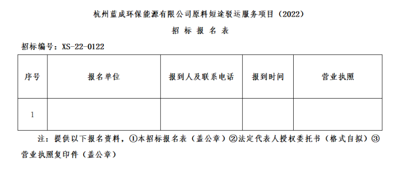 º¼ÖÝÀ¶³É»·±£ÄÜÔ´ÓÐÏÞ¹«Ë¾¾ÍÖÊÁ϶Ì;²µÔËЧÀÍÏîÄ¿£¨2022£©¾ÙÐйûÕæÕб꣬ÏêϸÈçÏ£º