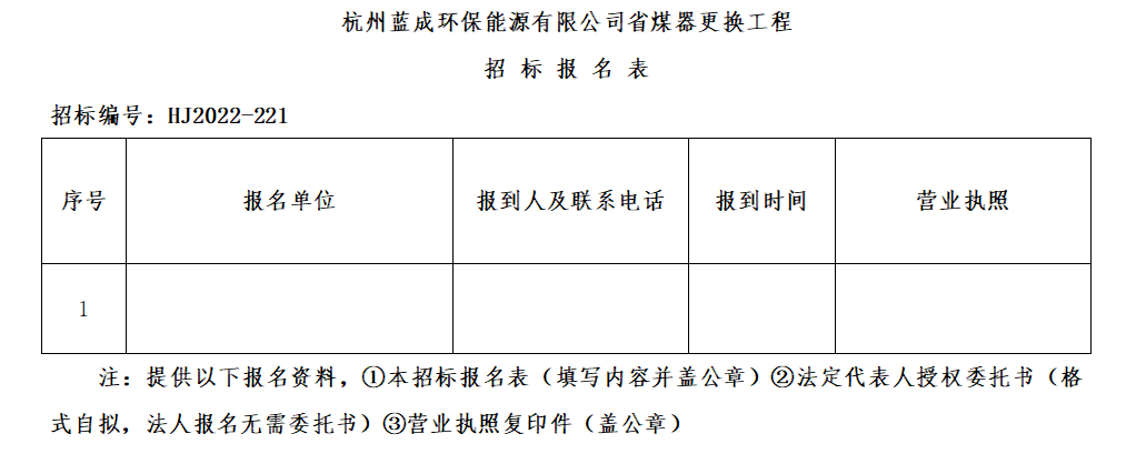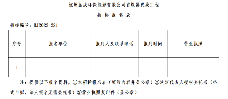 一、招 标 人:杭州蓝成环保能源有限公司,招标编号:HJ2022-221