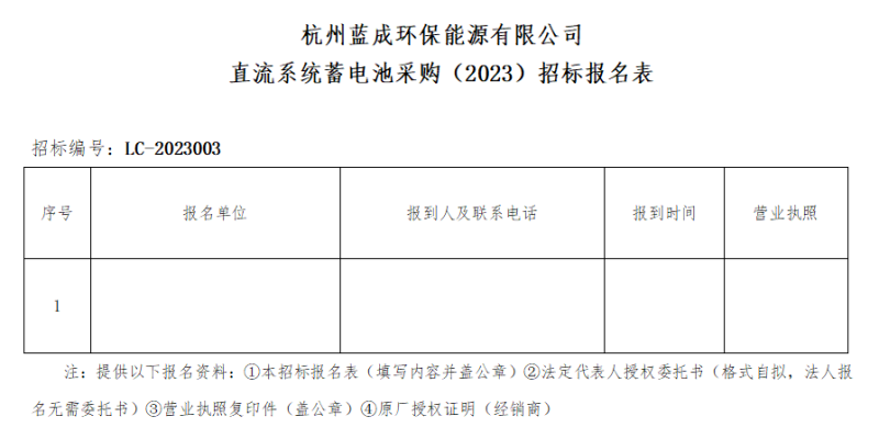 Ò»¡¢ÕÐ ±ê ÈË£ºº¼ÖÝÀ¶³É»·±£ÄÜÔ´ÓÐÏÞ¹«Ë¾£¬Õбê±àºÅ£º LC-2023003 ¡£