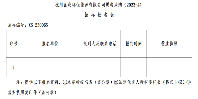 ¶þ¡¢ÕбêÏîÄ¿£ºº¼ÖÝÀ¶³É»·±£ÄÜÔ´ÓÐÏÞ¹«Ë¾ÃºÌ¿²É¹º(2023-4)¡£