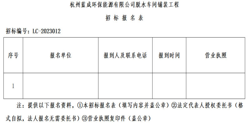 Ò»¡¢ÕÐ ±ê ÈË£ºº¼ÖÝÀ¶³É»·±£ÄÜÔ´ÓÐÏÞ¹«Ë¾£¬Õбê±àºÅ£ºLC-2023012