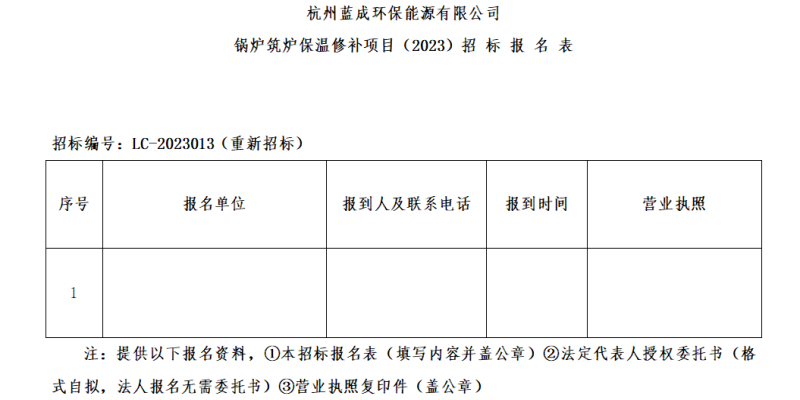 ¶þ¡¢ÕбêÏîÄ¿£ºº¼ÖÝÀ¶³É»·±£ÄÜÔ´ÓÐÏÞ¹«Ë¾¹øÂ¯Öþ¯±£ÎÂÐÞ²¹ÏîÄ¿£¨2023£©