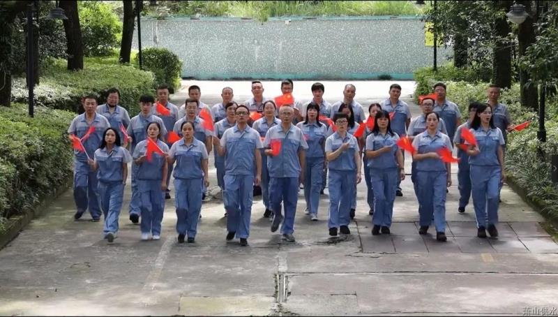 运动的最后,全体职员高唱红歌《我和我的祖国》,以高昂的风貌、嘹亮的歌声、真挚的情绪,向亲爱的祖国献上由衷的祝福,也表达对朝夕相处的水厂的热爱之情。