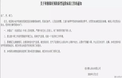 1月25日,公司第一时间对员工接触湖北来萧职员情形开展摸排,切实做好周全摸底。