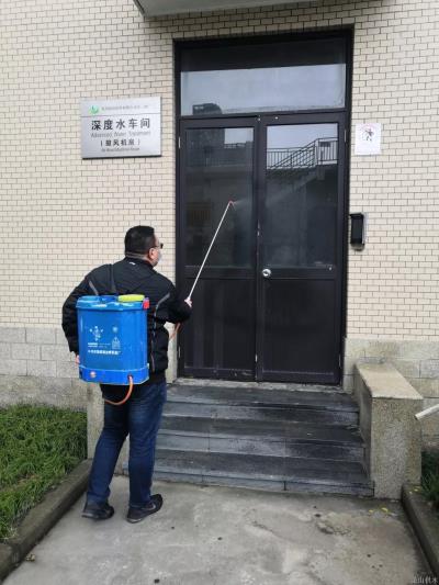 为有用提防疫情伸张,公司水质科配制75%酒精,分发给仍需坚守岗位的部分,用于办公及生产区域消毒。下属五个水厂将次氯酸钠经化验室配制成消毒液,将其喷洒于厂区各处,为事情情形消毒。节后开工前,公司也将安排事情职员用酒精、消毒液对事情场合、食堂等区块举行消毒。