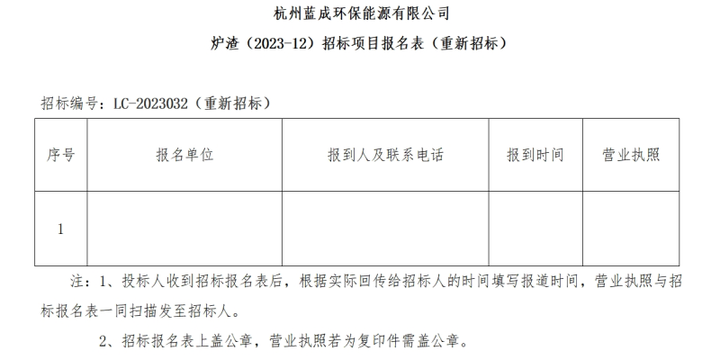 Ò»¡¢ÕÐ ±ê ÈË£ºº¼ÖÝÀ¶³É»·±£ÄÜÔ´ÓÐÏÞ¹«Ë¾£¬Õбê±àºÅ£ºLC-2023032£¨ÖØÐÂÕб꣩¡£