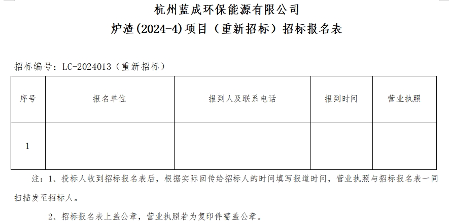 Ò»¡¢ÕР±ê ÈË£ºº¼ÖÝÀ¶³É»·±£ÄÜÔ´ÓÐÏÞ¹«Ë¾ £¬Õбê±àºÅ£ºLC-2024013£¨ÖØÐÂÕб꣩¡£