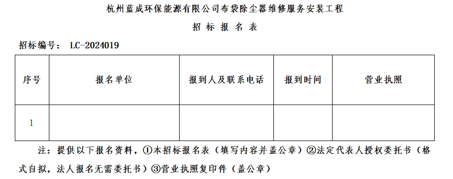 Ò»¡¢ÕÐ ±ê ÈË£ºº¼ÖÝÀ¶³É»·±£ÄÜÔ´ÓÐÏÞ¹«Ë¾£¬Õбê±àºÅ£ºLC-2024019
