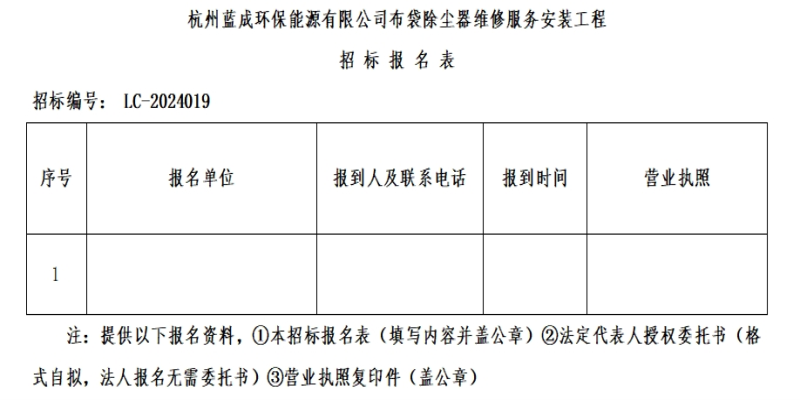 ¶þ¡¢ÕбêÏîÄ¿£ºº¼ÖÝÀ¶³É»·±£ÄÜÔ´ÓÐÏÞ¹«Ë¾²¼´ü³ý³¾Æ÷άÐÞЧÀÍ×°Öù¤³Ì