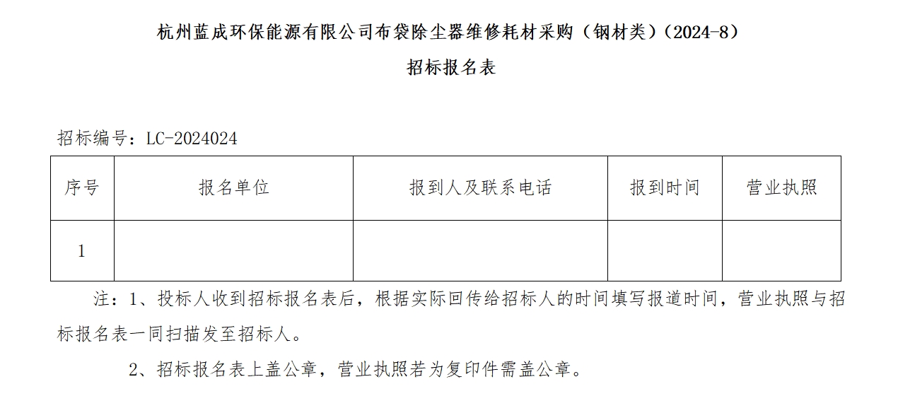 Ò»¡¢ÕР±ê ÈË£ºº¼ÖÝÀ¶³É»·±£ÄÜÔ´ÓÐÏÞ¹«Ë¾ £¬Õбê±àºÅ£ºLC-2024024¡£