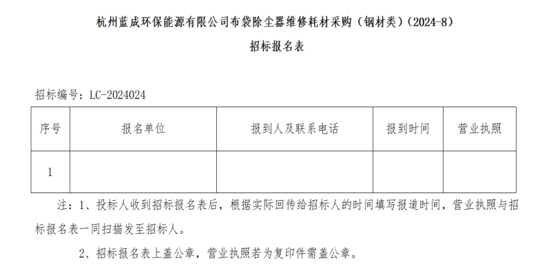 ¶þ¡¢ÕбêÏîÄ¿£ºº¼ÖÝÀ¶³É»·±£ÄÜÔ´ÓÐÏÞ¹«Ë¾²¼´ü³ý³¾Æ÷άÐ޺IJIJɹº£¨¸Ö²ÄÀࣩ£¨2024-8£©¡£