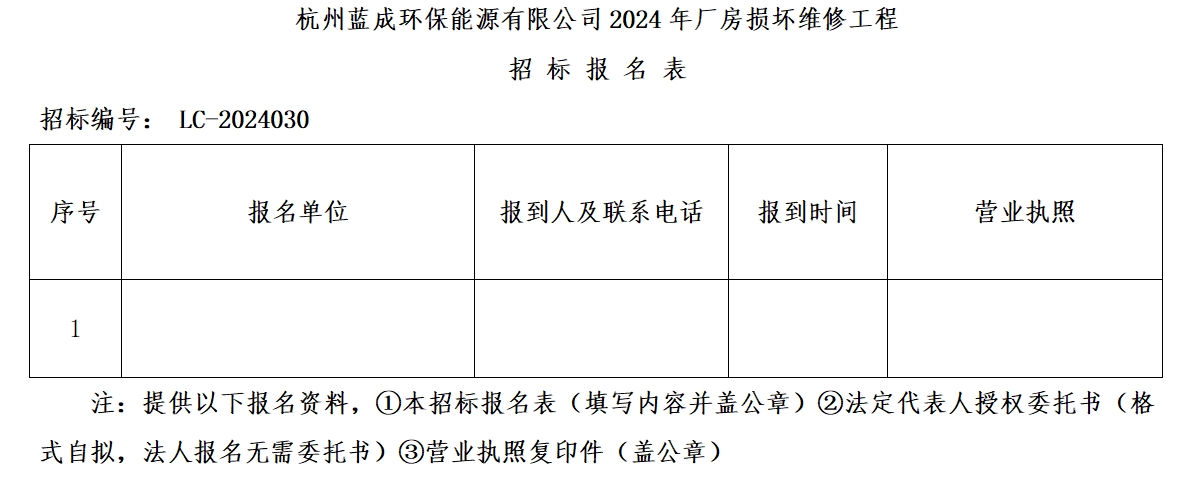 ¶þ¡¢ÕбêÏîÄ¿£ºº¼ÖÝÀ¶³É»·±£ÄÜÔ´ÓÐÏÞ¹«Ë¾2024Äê³§·¿Ëð»µÎ¬ÐÞ¹¤³Ì