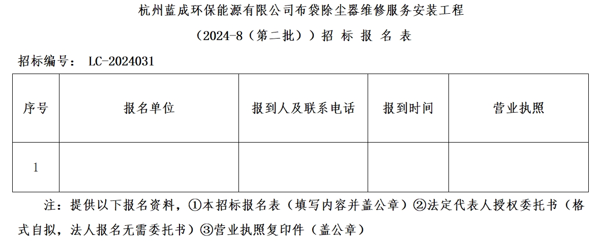 ¶þ¡¢ÕбêÏîÄ¿£ºº¼ÖÝÀ¶³É»·±£ÄÜÔ´ÓÐÏÞ¹«Ë¾²¼´ü³ý³¾Æ÷άÐÞЧÀÍ×°Öù¤³Ì£¨2024-8£¨µÚ¶þÅú£©£©