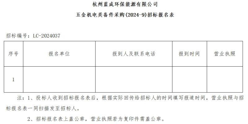 Îå¡¢·¢·ÅÕбêÎļþʱ¼ä£ºÓÐÒâÏòµÄͶ±êÈ˿ɴÓ2024Äê9ÔÂ15ÈÕÖÁ2024Äê9ÔÂ19ÈÕ£¬ÖðÈÕÉÏÎç9:00~11:30ʱ£¬ÏÂÖç12:00~16:00ʱ£¨±±¾©Ê±¼ä£©£¬ÔÚº¼ÖÝÀ¶³É»·±£ÄÜÔ´ÓÐÏÞ¹«Ë¾ÁìÈ¡ÕбêÎļþ£¬¿Éµç×Ó°æµÄÐÎʽ·¢³ö¡£