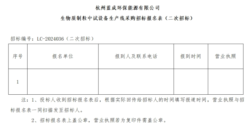 Ò»¡¢ÕбêÈË£ºº¼ÖÝÀ¶³É»·±£ÄÜÔ´ÓÐÏÞ¹«Ë¾£¬Õбê±àºÅ£ºLC-2024036£¨¶þ´ÎÕб꣩¡£