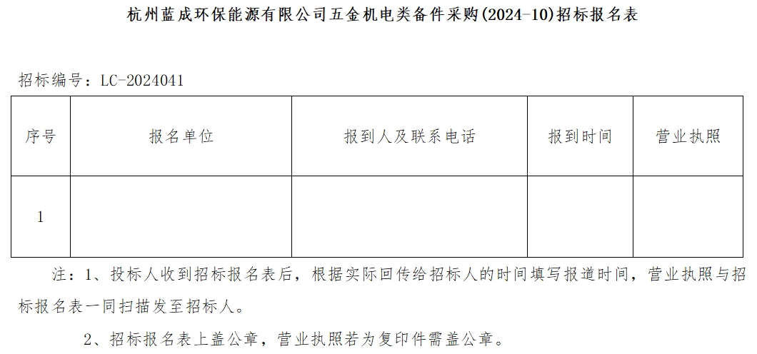 Ò»¡¢ÕÐ ±ê ÈË£ºº¼ÖÝÀ¶³É»·±£ÄÜÔ´ÓÐÏÞ¹«Ë¾£¬Õбê±àºÅ£ºLC-2024041¡£