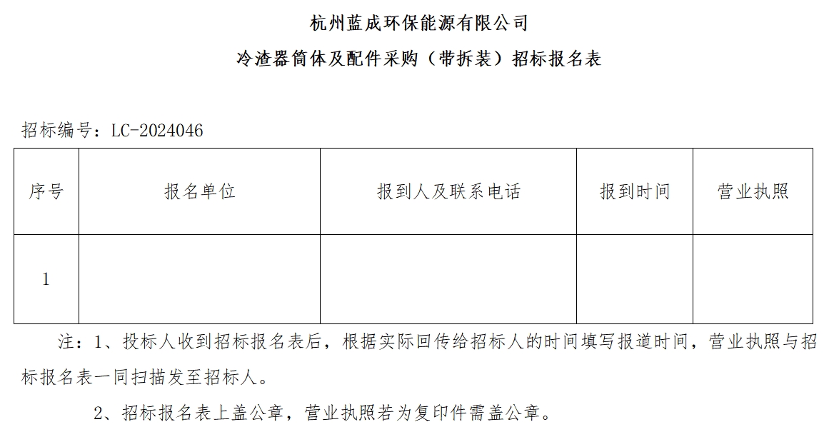 Ò»¡¢ÕбêÈË£ºº¼ÖÝÀ¶³É»·±£ÄÜÔ´ÓÐÏÞ¹«Ë¾£¬Õбê±àºÅ£ºLC-2024046¡£