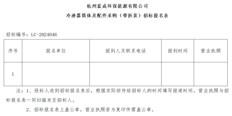 ¶þ¡¢ÕбêÏîÄ¿£ºº¼ÖÝÀ¶³É»·±£ÄÜÔ´ÓÐÏÞ¹«Ë¾ÀäÔüÆ÷ͲÌå¼°Åä¼þ²É¹º£¨´ø²ð×°£©¡£