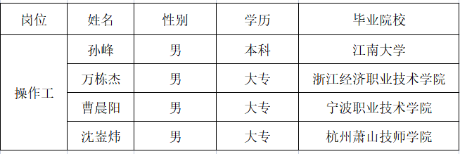 附件:杭州蓝成环保能源有限公司操作工岗位招聘拟任命职员