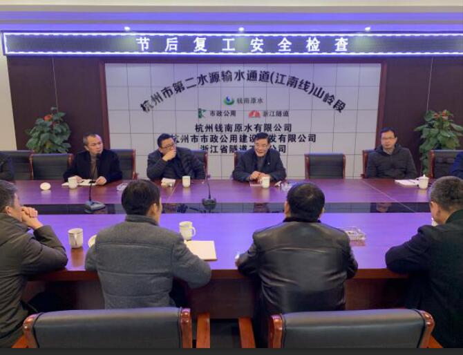 2019年2月15日上午,杭州钱南原水有限公司董事长胡妙生带队对杭州市第二水源输水通道工程江南线项目节后复工情形举行了检查。