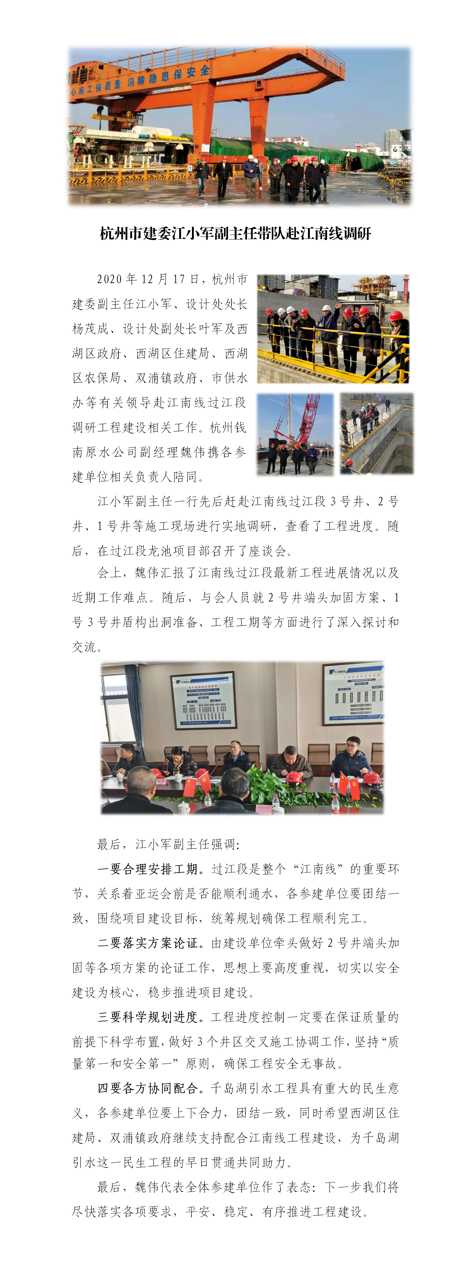 杭州市建委江小军副主任带队赴江南线调研