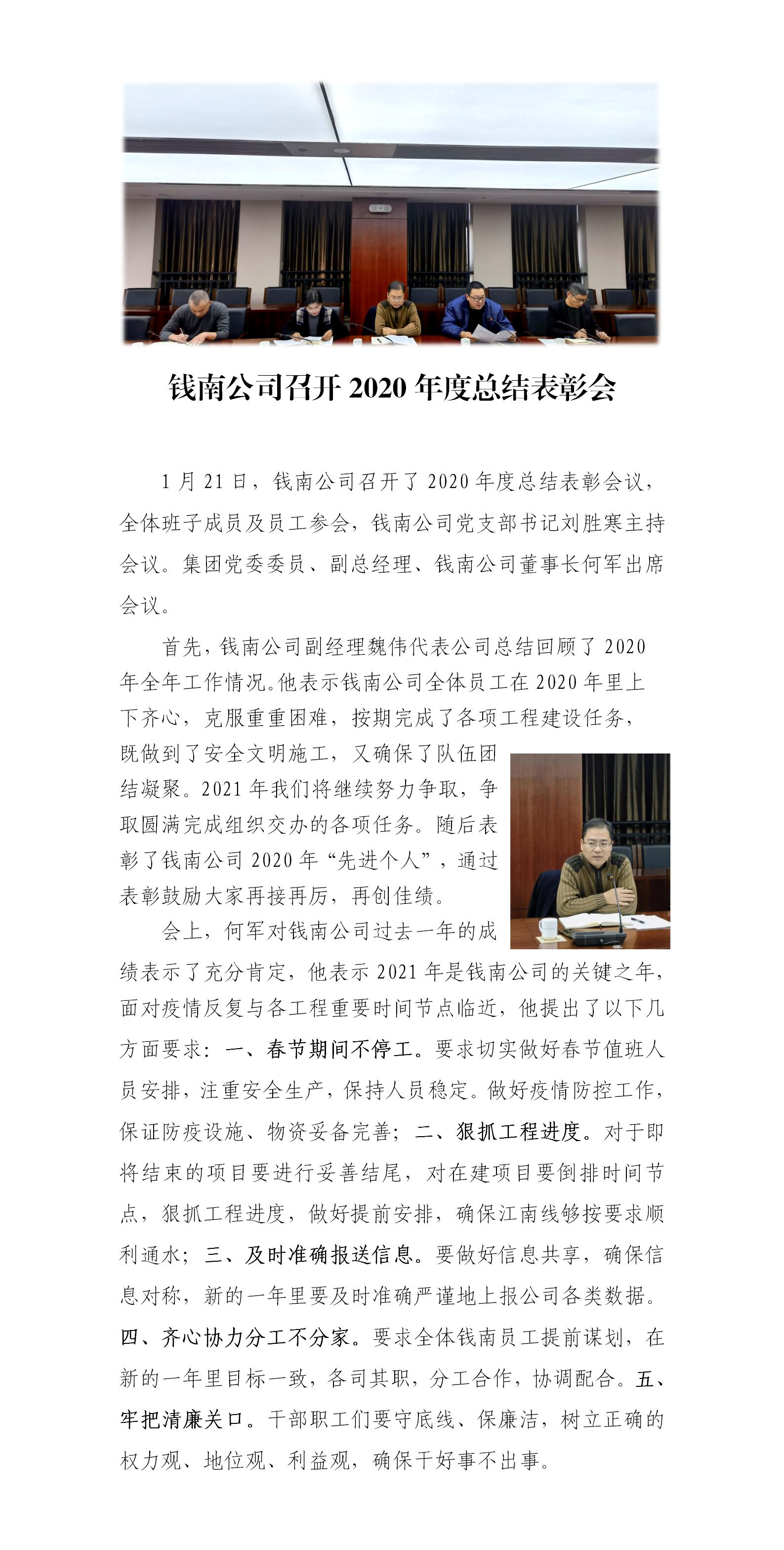 钱南公司召开2020年度总结表扬会