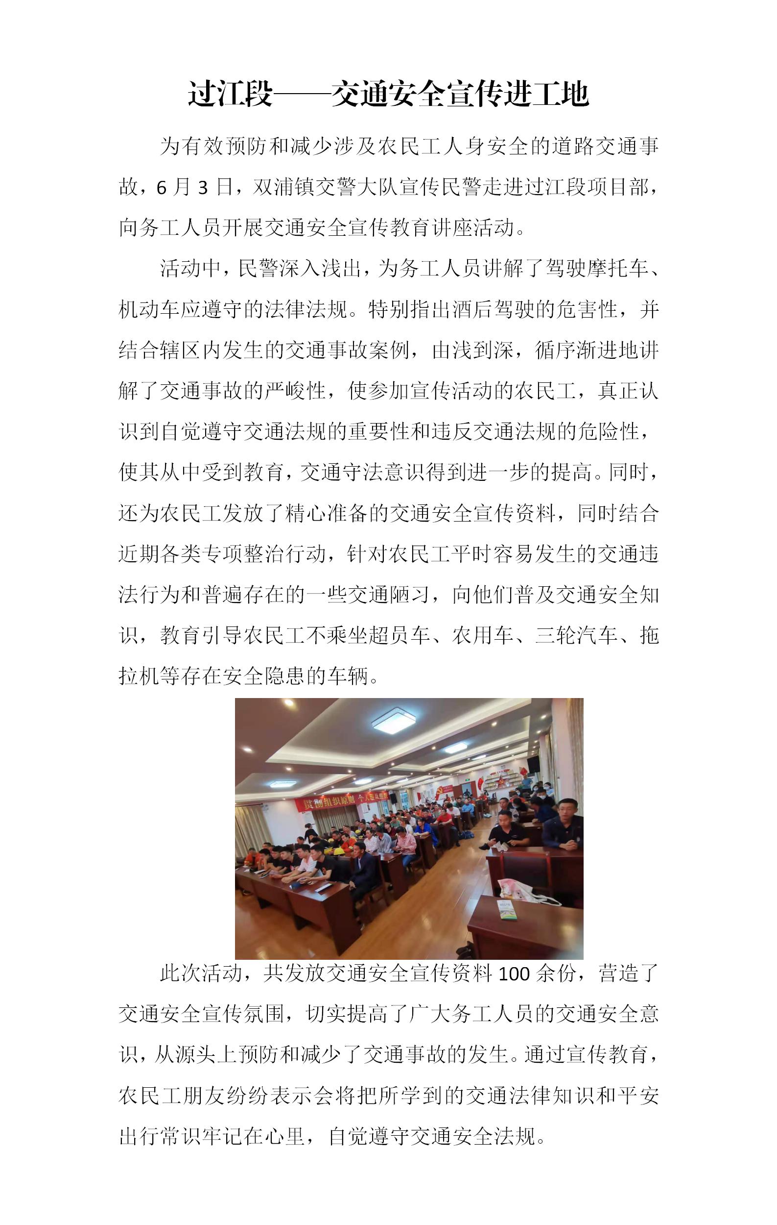 过江段——交通清静宣传进工地
