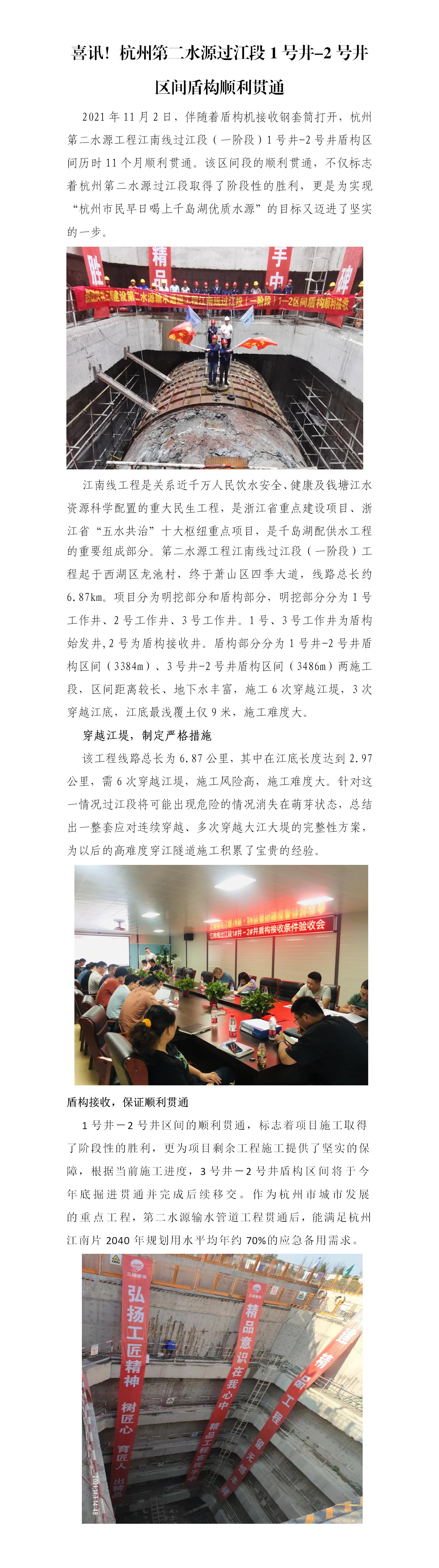 喜讯!杭州第二水源过江段1号井-2号井 区间盾构顺遂意会