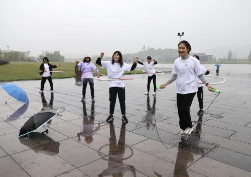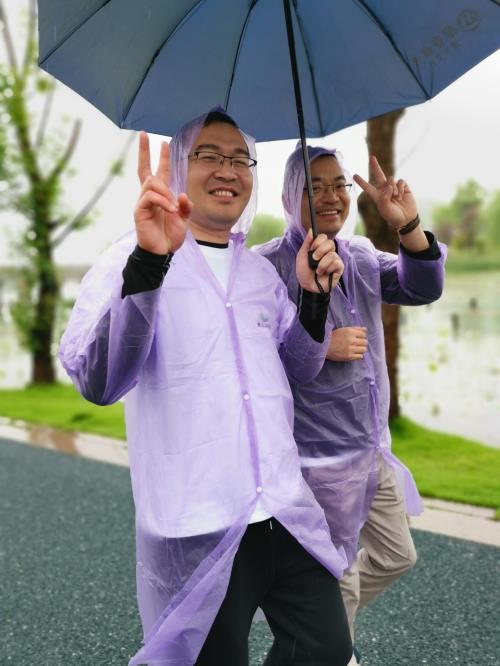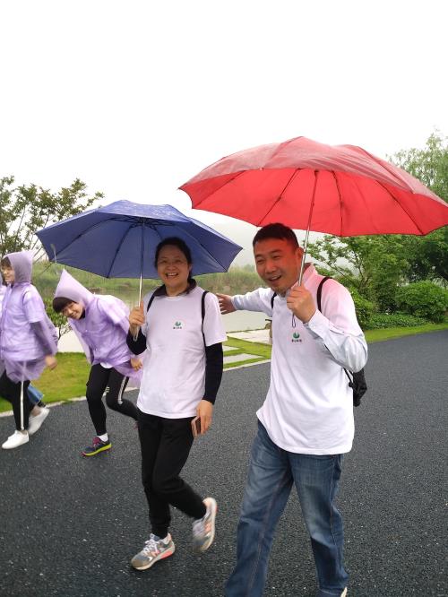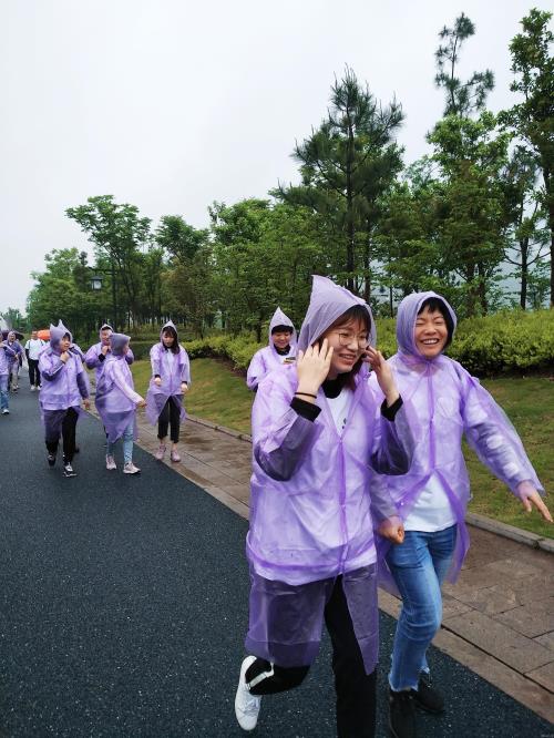 雨水浇不灭热情,阴霾遮不住笑容。上午9时许,80余名集团干部职工从湘湖金融小镇出发,最先5公里毅行,途经定山广场、湘湖三期花海、摇橹船环行一周至达湘湖金融小镇会客厅后竣事,时长约1小时。