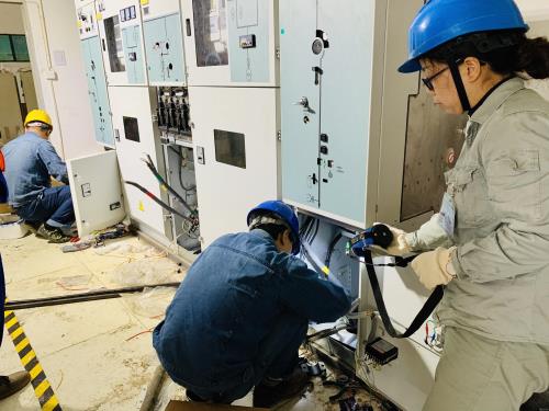 10月28日,按接两条高压进线,一条变压器出线,制作高压电缆头,以及毗连变压器与低配电柜的铝排桥架。别的,做好相关装备电器试验,检测装备是否正常运行,完成最后扫尾事情,顺遂通电通水。替换后的低压配电柜自带小型发电机,可为突发断电提供应急之需。