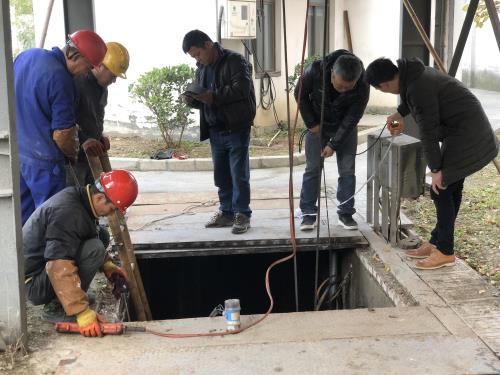 此前,南片运管中心事情职员在一样平常巡查中发明义桥镇1号泵站污水泵故障,经吊泵检查后发明污水泵底座脱落,需下池打捞举行有限空间作业,以包管生产正常。