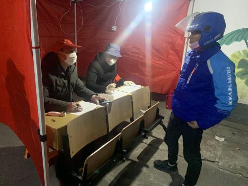 212130分 ,文源社区接到住民举报 ,社区内有一家饺子店在偷偷营业 ,李永晓和队友们连忙赶往现场 ,对店主举行疏导休业 ,见告店主和主顾集中聚餐的危害性和现在疫情的严重性 。