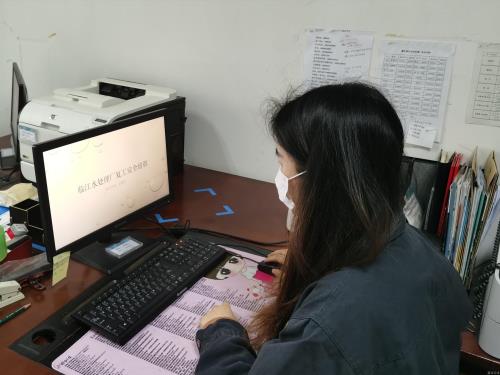 该厂指派专人赶制《临江水处置惩罚厂复工清静培训》PPT培训课件,并将课件和集团《复工清静培训》教育视频下发给全体员工开展线上复工清静培训,每位员工可使用电脑、手机、平板等工具随时随地学习,清静利便又快捷。