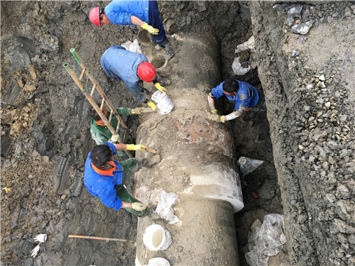 ¿±Ì½Ê±´ú £¬ÊÂÇéÖ°Ô±·¢Ã÷¹ÜµÀ©ˮλÖÃÖÜΧÓÐÈ¼Æø¹ÜµÀºÍµçÁ¦¹Ü £¬Á¬Ã¦ÁªÏµµçÁ¦¹«Ë¾ÓëÈ¼Æø¹«Ë¾²¢È·¶¨Î»Öà £¬È·±£ÇÀÐÞ¶ÔÈ¼Æø¹ÜºÍµçÁ¦¹ÜÎÞÓ°Ïì¡£ÇÀÐÞÖÐ £¬Òò¹ÜµÀÆÆËðλÖÃÊܵçÁ¦¹Ü×èµ² £¬ÍÚ»úºÜÄÑ×÷Òµ £¬Ö»Ç¿È˹¤¿ªÍÚ £¬¼ÓÉÏÓêÌìÓ°Ïì £¬´ó´óÔöÌíÁËÇÀÐÞÄѶÈ¡£½üÈý¸üʱ·Ö £¬ÆÆËðλÖñ»ÕÒ³ö £¬¹ÜµÀ±¬¿ª70ÀåÃ׳¤µÄÁѺÛ¡£ÓÉÓڸùܵÀÊǸßÄÜ¹Ü £¬Ìæ»»ÐèÅ䱸Ïàͬ¹ÜµÀ¡£Ë¼Á¿µ½ÇÀÐÞʱ¼ä½ôÆÈ £¬ÄÏÆ¬Ô˹ÜÖÐÐÄ×îÖÕ½ÓÄÉÍâÒÂDN1400¸Ö¹Ü £¬²¢ÔÚÆäÖÐÌî³äËÙ¸ÉË®Äà £¬×îºó»ìÄýÍÁ·½°üµÄ¼Æ»®Ê©¹¤¡£