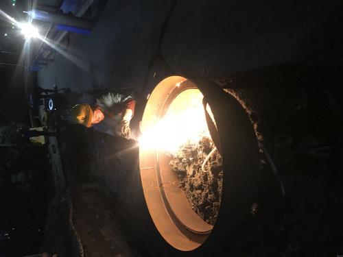 临浦泵站DN1000出水管建成时间较早,为通俗钢筋混凝土管,日积月累地面沉降以及温度骤降等缘故原由导致了该管道接口处橡胶圈弹出,爆发少量污水渗漏,南片运管中心事情职员凭证现场情形连忙制订了抢修计划——在接口处用速干水泥填充,再用较量省时的哈夫抱箍要领举行抢修。至当日晚上10时,抢修顺遂完成。