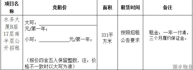 ¡¡¡¡ËµÃ÷£ºÍ¶±êÕß±¨¼Û¾ùÊÓΪµÚÒ»Äê×â½ð¼ÛÇ®£¬¶Ô±êµÄÆäËûÌõ¿îÌåÏÖÈϿɡ£